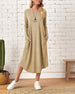 SPECIFIKATIONER Stil: Afslappet Materiale: Bomuld Kjoletype: A-linje Kjolelængde: Midi Halsudskæring: Rund hals Mønstertype: Ensfarvet Ærmetype: Almindeligt ærme Ærmelængde: Langærmet Detaljer: Lomme Pasform: Løs Sæson/årstid: Forår, Efterår, Vinter Lejlighed: Daglig Pakken inkluderer: 1 x Kjole STØRRELSESTABEL (cm) Størrelse B...
