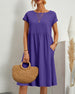 SPECIFIKATIONER Stil: Afslappet Materiale: Bomuldsblanding Kjoletype: Shift-kjole Kjolelængde: Over knæet Halsudskæring: Rund hals Mønstertype: Ensfarvet Ærmetype: Almindeligt ærme Ærmelængde: Kortærmet Pasform: Almindelig Sæson/årstid: Forår,Sommer Lejlighed: Daglig Pakken inkluderer: 1 x Kjole STØRRELSESTABEL (cm) Størrelse Buste Længd...