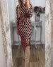 SPECIFIKATIONER Stil: Elegant Materiale: 5% Spandex, 95% Polyester Kjoletype: Pakket ind Kjolelængde: Midi Halsudskæring: Højhalset Mønstertype: Tryk Ærmetype: Almindeligt ærme Ærmelængde: Langærmet Detaljer: Flænge, Rynket Pasform: Almindelig Sæson/årstid: Forår, Efterår, Vinter Lejlighed: Daglig Pakken inkluderer: 1 x Kjole STØRRELSESTAB...