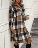 SPECIFIKATIONER Stil: Afslappet Materiale: 100% polyester Kjoletype: Shift-kjole Kjolelængde: Knælængde Halsudskæring: Revers Mønstertype: Ternet Ærmetype: Almindeligt ærme Ærmelængde: Langærmet Detaljer: Knapper Pasform: Almindelig Sæson/årstid: Forår, Efterår, Vinter Lejlighed: Daglig Pakken inkluderer: 1 x Kjole STØRRELSESTABEL (cm) St...