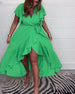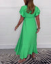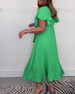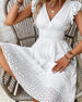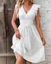 SPECIFIKATIONER Stil: Elegant Materiale: Bomuldsblanding Kjoletype: A-linje Kjolelængde: Midi Halsudskæring: V-udskæring Mønstertype: Ensfarvet Ærmetype: Pjuskærmer Ærmelængde: Kortærmet Detaljer: Patchwork,Snøre op,Pjusket Pasform: Almindelig Sæson/årstid: Forår,Sommer,Efterår Lejlighed: Daglig Pakken inkluderer: 1 x Kjole STØRRELSESTABEL...
