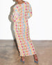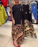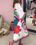 Kjole med kvaster, klokkeærmer og geometrisk print