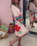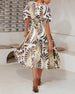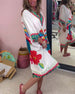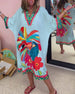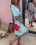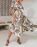 SPECIFIKATIONER Stil: Afslappet, Ferie Materiale: 100% Polyester Kjoletype: Shift-kjole Kjolelængde: Midi Halsudskæring: V-udskæring Mønstertype: Tryk Ærmetype: Vidærmet Ærmelængde: Trekvartærmet Pasform: Løs Sæson/årstid: Forår, Sommer Lejlighed: Daglig, Ferie Pakken inkluderer: 1 x Kjole STØRRELSESTABEL (cm) Størrelse Buste Læn...