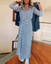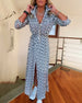 SPECIFIKATIONER Stil: Afslappet Materiale: Bomuldsblanding Kjoletype: A-linje Kjolelængde: Maxi Halsudskæring: Revers Mønstertype: Geometrisk tryk Ærmetype: Almindeligt ærme Ærmelængde: Langærmet Detaljer: Snøre op,Flænge Pasform: Almindelig Sæson/årstid: Forår,Sommer Lejlighed: Daglig Pakken inkluderer: 1 x Kjole STØRRELSESTABEL (cm) S...