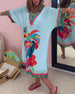 SPECIFIKATIONER Stil: Elegant Materiale: Bomuldsblanding Kjoletype: A-linje Kjolelængde: Maxi Halsudskæring: V-udskæring Mønstertype: Tryk Ærmetype: Almindeligt ærme Ærmelængde: Trekvartærmet Pasform: Almindelig Sæson/årstid: Forår,Sommer Lejlighed: Daglig Pakken inkluderer: 1 x Kjole STØRRELSESTABEL (cm) Størrelse Buste Længde S 95 1...