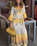 SPECIFIKATIONER Stil: Afslappet Materiale: Bomuldsblanding Kjoletype: Shift-kjole Kjolelængde: Maxi Halsudskæring: V-udskæring Mønstertype: Tryk Ærmetype: Vidærmet Ærmelængde: Langærmet Detaljer: Patchwork,Snøre op Pasform: Almindelig Sæson/årstid: Forår,Sommer Lejlighed: Daglig Pakken inkluderer: 1 x Kjole STØRRELSESTABEL (cm) Størrels...