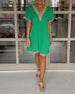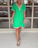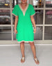 SPECIFIKATIONER Stil: Afslappet Materiale: Bomuldsblanding Kjoletype: A-linje Kjolelængde: Midi Halsudskæring: V-udskæring Mønstertype: Ensfarvet Ærmetype: Almindeligt ærme Ærmelængde: Halve ærmer Pasform: Almindelig Sæson/årstid: Sommer Lejlighed: Daglig Pakken inkluderer: 1 x Kjole STØRRELSESTABEL (cm) Størrelse Buste Længde S 95 11...