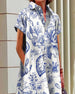 Afslappet elegant kjole med reverskrave og print