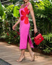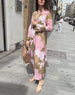 Lang blomsterkjole med slids og lange ærmer