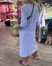 Langærmet farverig patchwork kjole