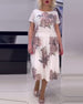 SPECIFIKATIONER Stil: Afslappet Materiale: Bomuldsblanding Kjoletype: Shift-kjole Kjolelængde: Midi Halsudskæring: Rund hals Mønstertype: Tryk Ærmetype: Almindeligt ærme Ærmelængde: Kortærmet Detaljer: Flænge Pasform: Almindelig Sæson/årstid: Sommer Lejlighed: Daglig Pakken inkluderer: 1 x Kjole STØRRELSESTABEL (cm) Størrelse Buste Læng...