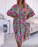 SPECIFIKATIONER Stil: Ferie, Elegant Materiale: Bomuldsblanding Kjoletype: A-linje Kjolelængde: Knælængde Halsudskæring: V-udskæring Mønstertype: Blomster-(garment type) Ærmetype: Flagermuse-ærmer Ærmelængde: Halve ærmer Detaljer: Snøre Pasform: Almindelig Sæson/årstid: Forår, Sommer, Efterår Lejlighed: Daglig, Ferie Pakken inkluderer: 1 x Kj...