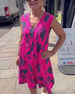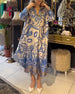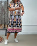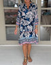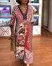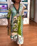 V-hals Kjole Med Vintage Print Og Spalte-Design