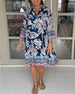 SPECIFIKATIONER Stil: Afslappet Materiale: 95% polyester, 5% spandex Kjoletype: A-linje Kjolelængde: Knælængde Halsudskæring: V-udskæring Mønstertype: Paisley-mønster, Tryk Ærmetype: Almindeligt ærme Ærmelængde: Ni-punkts-ærmer Pasform: Almindelig Sæson/årstid: Sommer Lejlighed: Daglig, Ferie Pakken inkluderer: 1 x Kjole STØRRELSESTABEL (cm...