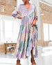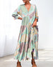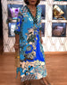 SPECIFIKATIONER Stil: Elegant Materiale: 5% Spandex, 95% Polyester Kjoletype: A-linje Kjolelængde: Maxi Halsudskæring: V-udskæring Mønstertype: Tryk Ærmetype: Almindeligt ærme Ærmelængde: Trekvartærmet Detaljer: Patchwork, Snøre Pasform: Almindelig Sæson/årstid: Forår, Sommer Lejlighed: Daglig Pakken inkluderer: 1 x Kjole STØRRELSESTABEL (...