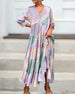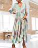 SPECIFIKATIONER Stil: Afslappet Materiale: 5% Spandex, 95% Polyester Kjoletype: Shift-kjole Kjolelængde: Midi Halsudskæring: V-udskæring, Revers Mønstertype: Tryk Ærmetype: Almindeligt ærme Ærmelængde: Langærmet Detaljer: Flænge Pasform: Løs Sæson/årstid: Forår, Sommer Lejlighed: Daglig Pakken inkluderer: 1 x Kjole STØRRELSESTABEL (cm) ...