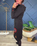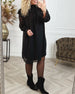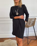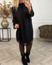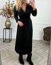 Stilfuld sort kjole med hofteholder og lange ærmer
