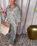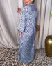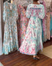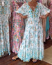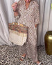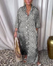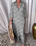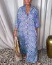 Vintage-mønstret maxikjole med skjortekrave og lommer