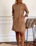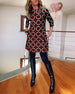 SPECIFIKATIONER Stil: Elegant Materiale: 95% polyester, 5% spandex Kjoletype: A-linje Kjolelængde: Midi Halsudskæring: Revers Mønstertype: Geometrisk tryk Ærmetype: Almindeligt ærme Ærmelængde: Langærmet Detaljer: Lomme, Knapper Pasform: Almindelig Sæson/årstid: Forår, Efterår, Vinter Lejlighed: Daglig Pakken inkluderer: 1 x Kjole STØRRELS...