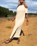 SPECIFIKATIONER Stil: Ferie, Chic Materiale: 100% Polyester Kjoletype: A-linje Kjolelængde: Maxi Halsudskæring: Rund hals Mønstertype: Ensfarvet Ærmetype: Flagermuse-ærmer Ærmelængde: Halve ærmer Pasform: Almindelig Sæson/årstid: Forår, Sommer Lejlighed: Daglig, Ferie, Fest Pakken inkluderer: 1 x Kjole STØRRELSESTABEL (cm) Størr...