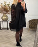 SPECIFIKATIONER Stil: Elegant Materiale: 94% polyester, 6% spandex Kjoletype: Shift-kjole Kjolelængde: Knælængde Halsudskæring: Båndkrave Ærmetype: Raglan ærme Ærmelængde: Langærmet Detaljer: Patchwork, Snøre op Pasform: Almindelig Sæson/årstid: Forår, Efterår, Vinter Lejlighed: Daglig Pakken inkluderer: 1 x Kjole STØRRELSESTABEL (cm) ...