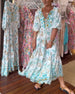 SPECIFIKATIONER Stil: Afslappet Materiale: Bomuldsblanding Kjoletype: A-linje Kjolelængde: Maxi Halsudskæring: V-udskæring Mønstertype: Tryk Ærmetype: Almindeligt ærme Ærmelængde: Trekvartærmet Detaljer: Kvast,Rynket Pasform: Almindelig Sæson/årstid: Forår,Sommer Lejlighed: Daglig Pakken inkluderer: 1 x Kjole STØRRELSESTABEL (cm) Størrelse B...