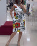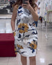 Afslappet kjole med trekvarte ærmer og botanisk print