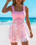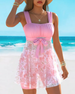 SPECIFIKATIONER Stil: Sød Materiale: 15% Spandex,85% Polyester Lejlighed: Ferie Halsudskæring: Firkantet hals Mønstertype: Tryk Ærmelængde: Uden ærmer Top type: Badekjole BH Type: Stropløs BH Underdel type: Naturlig Pasform: Almindelig Detaljer: Patchwork,Snøre op,Sløjfeknude Pakken inkluderer: 1 x Badekjole STØRRELSESTABEL (cm) Størrelse Bu...