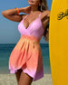 SPECIFIKATIONER Stil: Ferie, Sexet Materiale: Spandex, Polyester Lejlighed: Ferie Halsudskæring: V-udskæring Mønstertype: Farveblok Ærmetype: Almindeligt ærme Ærmelængde: Uden ærmer Top type: Badekjole BH Type: Stropløs BH Underdel type: Naturlig Pasform: Almindelig Sæson/årstid: Sommer Pakken inkluderer: 1 x Badekjole, 1 x Badeshorts STØR...