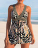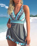 SPECIFIKATIONER Stil: Afslappet, Ferie, Boho Materiale: Spandex, Polyester Lejlighed: Ferie Halsudskæring: V-udskæring Mønstertype: Tryk Ærmelængde: Uden ærmer Top type: Badekjole BH Type: Stropløs BH Pasform: Almindelig Sæson/årstid: Sommer Pakken inkluderer: 1 x Badekjole, 1 x Badeshorts STØRRELSESTABEL (cm) Størrelse Buste Talje Hoft...