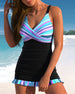 SPECIFIKATIONER Stil: Ferie Materiale: 15% Spandex, 85% Polyester Lejlighed: Ferie Halsudskæring: V-udskæring Mønstertype: Stribet, Geometrisk tryk, Tryk Ærmelængde: Uden ærmer Top type: Tankini BH Type: Stropløs BH Underdel type: Shorts Pasform: Almindelig Sæson/årstid: Forår, Sommer, Efterår, Vinter Detaljer: Snøre Pakken inkluderer: Tanki...