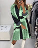 FUNKTIONER Elegant V-halsdesign: Det elegante V-halsdesign fremhæver perfekt den charmerende halslinje og tilføjer et strejf af elegance og charme til det overordnede look. Udsøgte prints: De unikke og udsøgte prints er som kunstværker, der pynter på nederdelen, hvilket gør dig til fokus, uanset hvor du går, og viser din modesmag. Smarte knu...