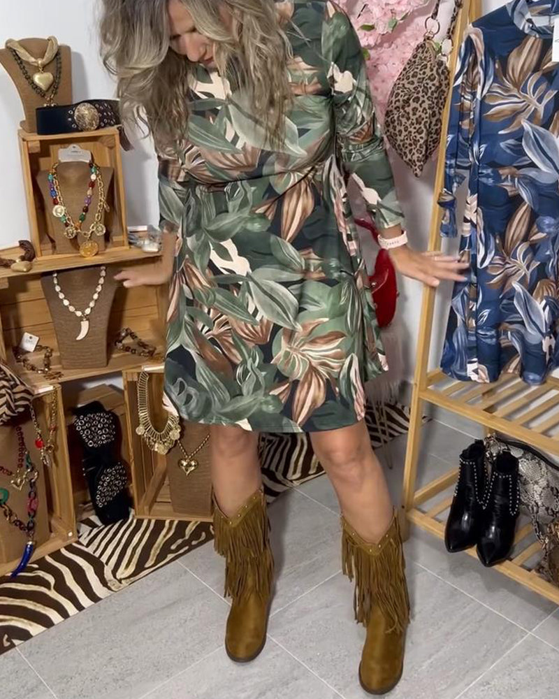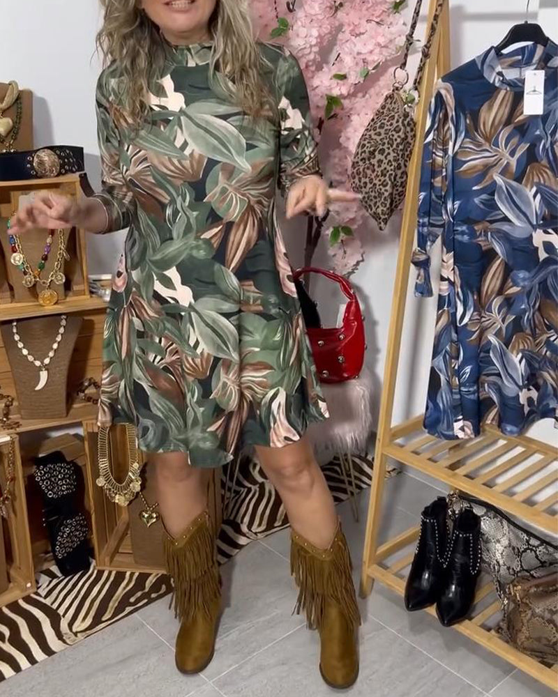 Kjole V-Hals Korte Ærmer Mønstret Løs