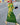 Lang blomsterkjole med V-hals og lanterneærmer