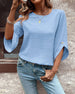 SPECIFIKATIONER Top type: Toppe Stil: Elegant, Forretning/Business Materiale: Bomuldsblanding Lejlighed: Daglig, Arbejde Halsudskæring: Rund hals Mønstertype: Ensfarvet Ærmetype: Pjuskærmer Ærmelængde: Halve ærmer Pasform: Almindelig Sæson/årstid: Forår, Sommer, Efterår Detaljer: Patchwork Pakken inkluderer: 1 x Top STØRRELSESTABEL (cm) Stør...