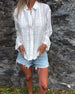 SPECIFIKATIONER Top type: Skjorte Stil: Afslappet Materiale: 100% Bomuld Lejlighed: Daglig Halsudskæring: Krave Mønstertype: Ensfarvet Ærmetype: Drop Shoulder Ærmelængde: Langærmet Pasform: Almindelig Sæson/årstid: Forår,Sommer Detaljer: Udhulende,Brodderi Pakken inkluderer: 1 x Skjorte STØRRELSESTABEL (cm) Størrelse Buste Længde Æ...