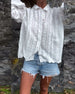 Lang bluse med elegante flæser