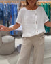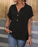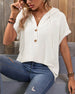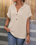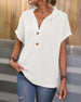 SPECIFIKATIONER Top type: Bluser Stil: Afslappet Materiale: 100% Polyester Lejlighed: Daglig Halsudskæring: V-udskæring Mønstertype: Ensfarvet Ærmetype: Almindeligt ærme Ærmelængde: Kortærmet Pasform: Almindelig Sæson/årstid: Forår, Sommer, Efterår Detaljer: Knapper, Snøre Pakken inkluderer: Bluse STØRRELSESTABEL (cm) Størrelse Buste Læ...