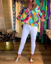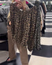 Stilfuld leopardprint bluse med blonde V-udskæring