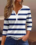 SPECIFIKATIONER Top type: Bluser Stil: Afslappet Materiale: Bomuldsblanding Lejlighed: Daglig Halsudskæring: V-udskæring Mønstertype: Stribet Ærmelængde: Trekvartærmet Pasform: Almindelig Sæson/årstid: Forår,Sommer Detaljer: Knapper Pakken inkluderer: 1 x Bluse STØRRELSESTABEL (cm) Størrelse Buste Længde Ærmer Skulder S 90 62 48 ...