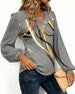 SPECIFIKATIONER Top type: Bluser Stil: Afslappet Materiale: 95% Polyester, 5% Spandex Lejlighed: Daglig, Arbejde Halsudskæring: V-udskæring Mønstertype: Geometrisk tryk Ærmetype: Almindeligt ærme Ærmelængde: Langærmet Pasform: Løs Sæson/årstid: Forår, Efterår, Vinter Pakken inkluderer: Bluse STØRRELSESTABEL (cm) Størrelse Længde Sk...