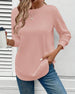 SPECIFIKATIONER Top type: Bluser Stil: Afslappet Materiale: Bomuldsblanding, Snøre Lejlighed: Daglig Halsudskæring: V-udskæring Mønstertype: Ensfarvet Ærmetype: Puf-ærmer Ærmelængde: Trekvartærmet Pasform: Almindelig Sæson/årstid: Forår, Sommer, Efterår Detaljer: Patchwork, Udhulende Pakken inkluderer: Bluse STØRRELSESTABEL (cm) Størrels...