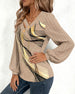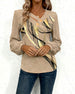 SPECIFIKATIONER Top type: Toppe Stil: Afslappet Materiale: 100% Polyester Lejlighed: Daglig, Ferie Halsudskæring: V-udskæring Mønstertype: Farveblok Ærmetype: Almindeligt ærme Ærmelængde: Langærmet Pasform: Almindelig Sæson/årstid: Forår, Efterår Pakken inkluderer: 1 x Top STØRRELSESTABEL (cm) Størrelse Buste Længde S 95 65 M 100 66...