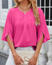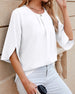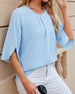 SPECIFIKATIONER Top type: Bluser Stil: Afslappet, Forretning/Business Materiale: 100% Polyester Lejlighed: Daglig, Arbejde Halsudskæring: V-udskæring Mønstertype: Ensfarvet Ærmetype: Almindeligt ærme Ærmelængde: Trekvartærmet Pasform: Almindelig Sæson/årstid: Forår, Sommer Detaljer: Rynket Pakken inkluderer: Bluse STØRRELSESTABEL (cm) ...