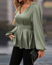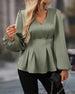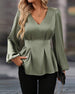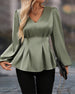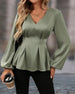 Casual Top Med Smockede Lange Ærmer Og V-hals