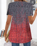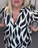 Kortærmet afslappet top med V-udskæring og kontrastprint