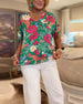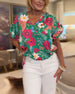 Bluse Med V-Hals Blomstermønster Korte Ærmer