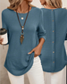 SPECIFIKATIONER Top type: Bluser Stil: Afslappet Materiale: Bomuldsblanding Lejlighed: Daglig Halsudskæring: Rund hals Mønstertype: Ensfarvet Ærmetype: Almindeligt ærme Ærmelængde: Trekvartærmet Pasform: Almindelig Sæson/årstid: Sommer Detaljer: Knapper Pakken inkluderer: 1 x Bluse STØRRELSESTABEL (cm) Størrelse Buste Længde S 97 65 M 10...
