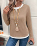 SPECIFIKATIONER Top type: Toppe Stil: Afslappet Materiale: 95% Polyester, 5% Spandex Lejlighed: Daglig Halsudskæring: Rund hals Mønstertype: Ensfarvet Ærmetype: Almindeligt ærme Ærmelængde: Langærmet Pasform: Almindelig Sæson/årstid: Forår,Efterår,Vinter Detaljer: Patchwork Pakken inkluderer: 1 x Top STØRRELSESTABEL (cm) Størrelse Længd...