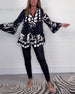 Mønstret bluse med knapper og klokkeærmer